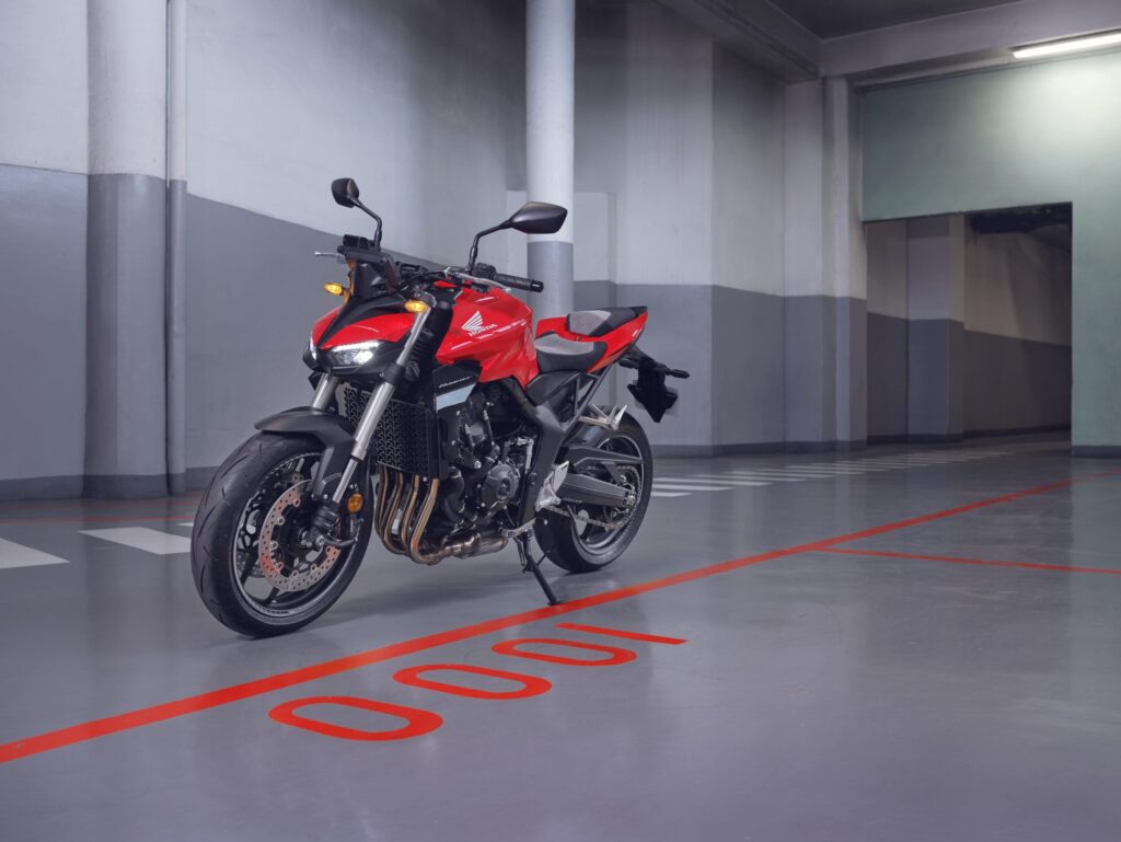 Nu släpper Honda äntligen sin vassaste Hornet hittills, ett omtalat och efterlängtat kraftpaket som garanterar underhållning på hög nivå. CB1000 Hornet har ärvt den mäktiga Fireblade-motorn och ett avancerat elektronikpaket med tre körlägen med förinställda nivåer av effekt, motorbroms, antispinn och Wheelie Control, plus två ställbara körlägen där man väljer nivåerna själv. Den 6-växlade lådan har assisterande slirkoppling och utväxlingar anpassade för optimal acceleration. Fjädringen hanteras av kvalitetskomponenter från Showa, med en inverterad 41 mm SFF-BP-gaffel fram och enkeldämpare med Pro-Link bak. Den kraftfulla frambromsen består av två radialmonterade fyrkolvsok som greppar varsin 310 mm flytande skiva. Framändan domineras av dubbla LED-strålkastare, annars är den kaxigt avskalad som sig bör på en streetfighter. Mitt i förarens blickfång sitter en lättavläst 5-tums TFT-färgskärm.