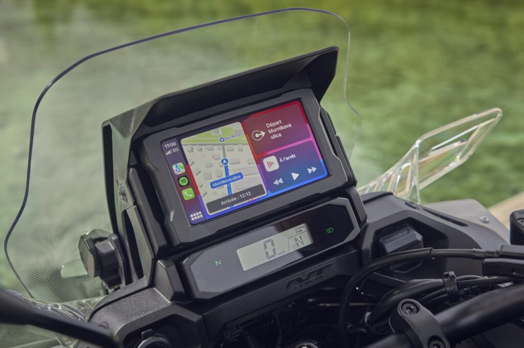Bakom kåpglaset sitter en 6,5-tums färgpekskärm med massor av inställningsmöjligheter och både Apple CarPlay®, Android Auto® och Bluetooth® för mobilanslutning. I standardutrustningen ingår farthållare, uppdaterade värmehandtag, USB-uttag, 12-voltsuttag, självavstängande blinkers, nödbromsvarning och centralstöd.
